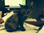 Part II:  My sister was driving back from a late lunch this afternoon and the car in front of her tossed something out the window.  My sister drove about 1/2 block and said to herself, "I need to see what that was."  Thank goodness she did.  It was another kitten.  She brought it by my office so I could weigh it on the postage meter.  I took him around and marketed him to my co-workers, but no nibbles so far.